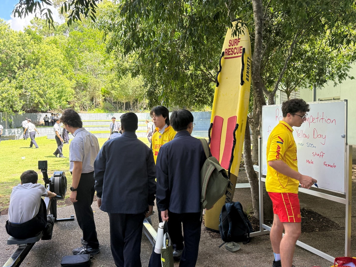 During the lunchbreak, students and staff showed their support by wearing red and yellow accessories and taking part in a range of interactive activities. The lunchtime program included a simulated CPR challenge using our new mannikins, a rowing challenge, and an opportunity for qualified surf lifesaving members to share their experiences with other students interested in becoming involved.